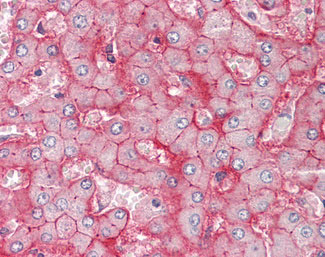 Anti-SLC22A1 / OCT1 antibody IHC staining of human liver. |