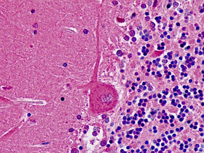 Anti-PNMT antibody IHC staining of human brain, cerebellum. |