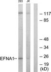 Western blot of extracts from 293/Jurkat cells, using EFNA1 Antibody. |