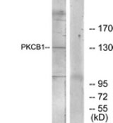 Western blot of extracts from 293 cells, using PKCB1 Antibody. |