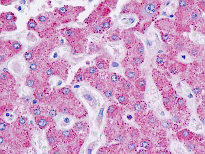 Anti-CYP21A2 antibody IHC staining of human liver.