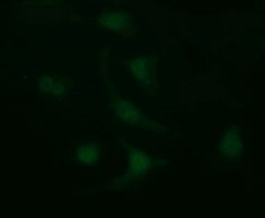 Immunofluorescent staining of HeLa cells using anti-LGALS3 mouse monoclonal antibody. |
