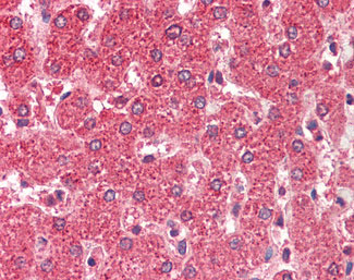 Anti-ALDH5A1 antibody IHC staining of human liver.
