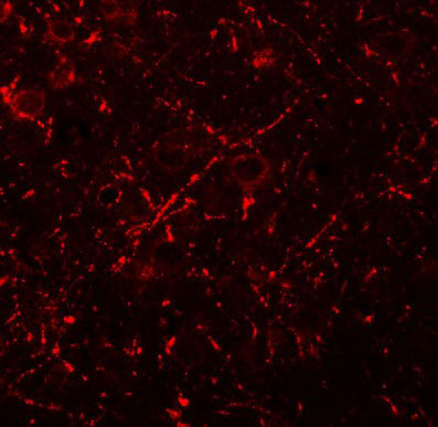 Immunofluorescence of MS4A6A in rat brain tissue with MS4A6A antibody at 20 g/mL.