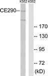 Western blot of extracts from K562 cells, using CEP290 Antibody. |
