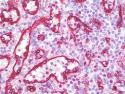 Immunofluorescence of SDPR in human spleen tissue with SDPR antibody at 20 ug/ml.