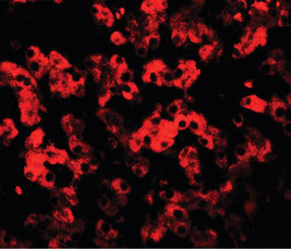 Immunofluorescence of TMEM135 in human liver tissue with TMEM135 antibody at 20 ug/ml.