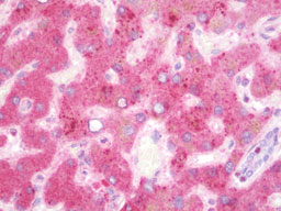 Anti-TMEM135 antibody IHC staining of human liver. |
