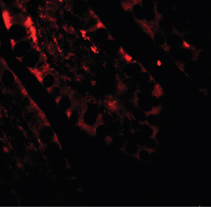Immunofluorescence of CRTC2 in human small intestine tissue with CRTC2 antibody at 20 ug/ml.