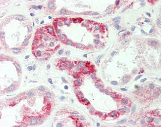 Anti-ADORA1 / Adenosine A1 Receptor antibody IHC staining of human kidney. |