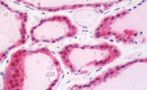 Anti-TPMT antibody IHC staining of human thyroid. |