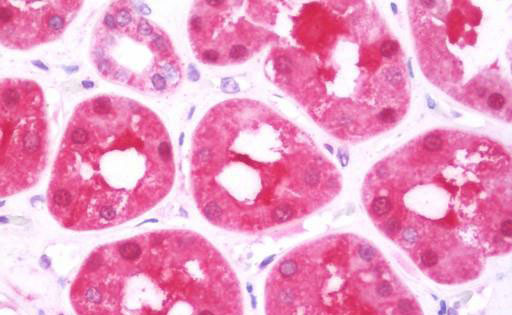 Anti-DCXR antibody IHC staining of human kidney. |