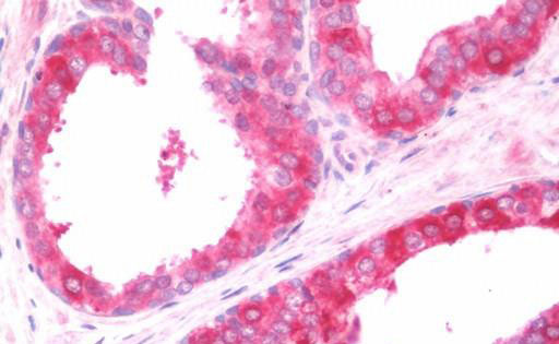 Anti-COL4A3BP / CERT antibody IHC staining of human prostate.