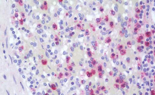 Anti-CTSG / Cathepsin G antibody IHC staining of human spleen. |