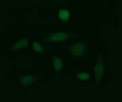 Immunofluorescent staining of HeLa cells using anti-GLB1 mouse monoclonal antibody. |