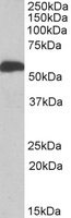 ALDH5A1 antibody (1 ug/ml) staining of Human Liver lysate (35 ug protein/ml in RIPA buffer). |