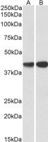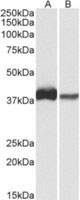 CAPG Antibody (0.3 g/ml) staining of U937 (A) and Human Spleen (B) lysates (35 g protein in RIPA...