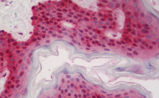 Anti-RCAN1 / DSCR1 antibody IHC staining of human skin. |