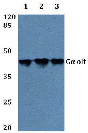 Western blot analysis of GNAL Antibody at a 1:500 dilution. |