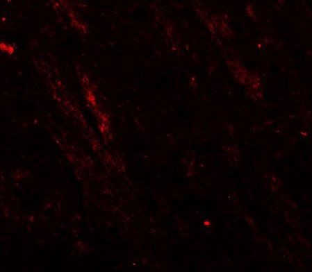 Immunofluorescence of CACNA1H in mouse brain tissue with CACNA1H antibody at 20 ug/ml. |