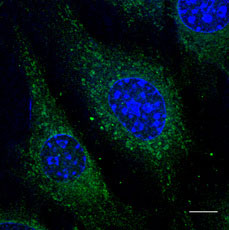Immunofluorescence - anti-Rab5 antibody using B6-RPE07 cells at 1:50 dilution.