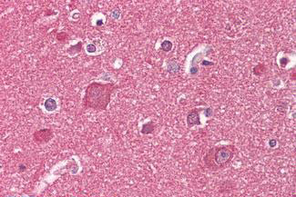 Anti-Reticulon 1/2 antibody IHC of human brain, cortex. |