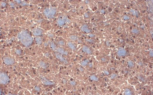 IHC analysis of GABA(A)R Beta 3 in frozen sections of mouse brain extract using GABRB3 antibody.