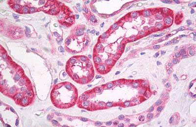Anti-GABRB3 antibody IHC staining of human kidney. |