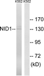Western blot of extracts from K562 cells, using NID1 Antibody. |