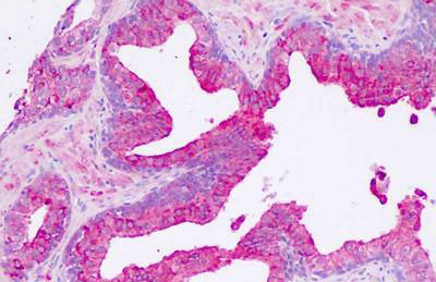 Anti-HTR1B / 5-HT2B Receptor antibody IHC staining of human prostate.