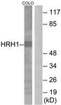 Western blot of extracts from COLO205 cells, using HRH1 Antibody. |