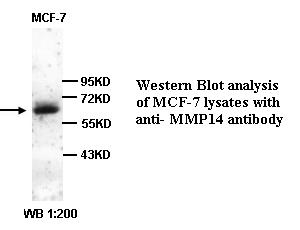 Western Blot analysis of MCF-7 lysates with anti-MMP14 antibody |