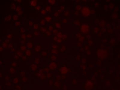 Immunofluorescence of SLAIN1 in A549 cells with SLAIN1 antibody at 2.5 g/mL.