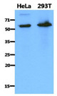 Western Blot: The cell lysates of HeLa (40 ug) and 293T (40 ug) were resolved by SDS-PAGE,... |