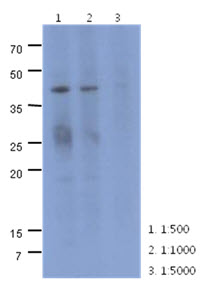 Western Blot: The cell lysates of HepG2 (40 ug) were resolved by SDS-PAGE, transferred to PVDF... |