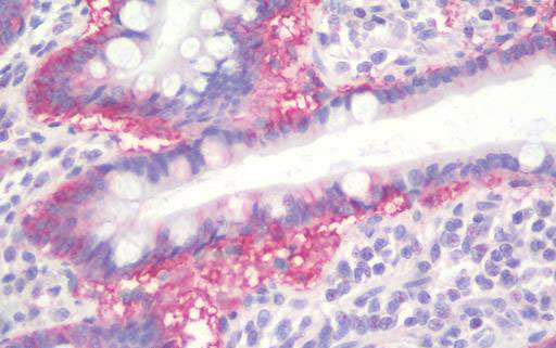 Anti-RAB1A / RAB1 antibody IHC staining of human small intestine.
