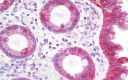 Anti-JUP/CTNNG/Junction Plakoglobin antibody IHC staining of human colon.