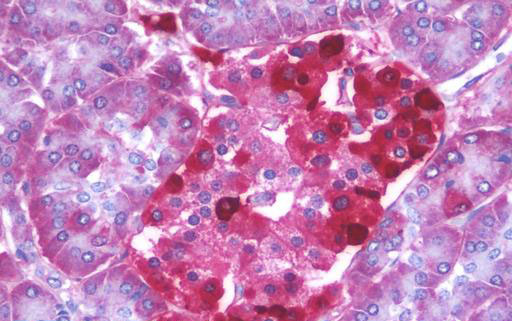Anti-TMEM145 antibody IHC staining of human pancreas.