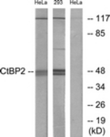 Western blot of extracts from HeLa/293 cells, using CtBP2 Antibody. |