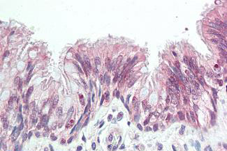 Anti-ALPK1 antibody IHC staining of human bronchus.