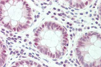 Anti-SLC4A1AP / Kanadaptin antibody IHC staining of human colon.