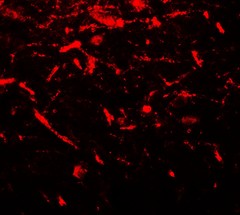 Immunofluorescence of FMR1 in human brain tissue with FMR1 antibody at 20 g/mL.