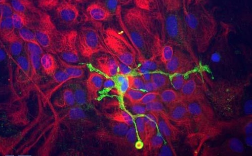Immunocytochemistry of a mixed neuron/glial culture from newborn rat brain stained with CORO1A /...