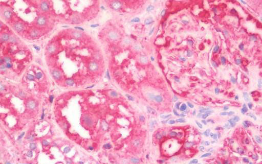 Anti-APOA1 / Apolipoprotein A 1 antibody IHC staining of human kidney. |