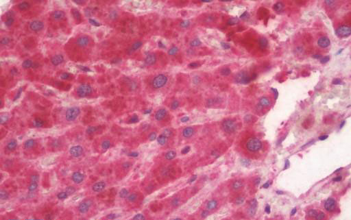 Anti-COXG / COX6B1 antibody IHC staining of human liver. |