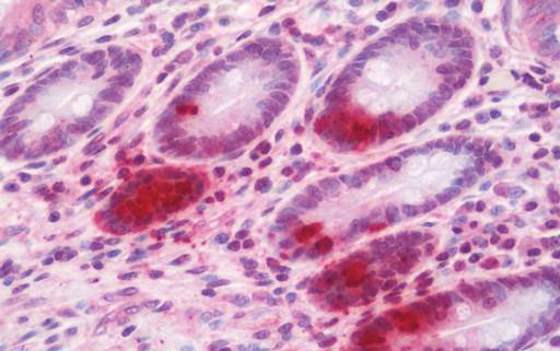 Anti-PGK1/Phosphoglycerate Kinase 1 antibody IHC staining of human small intestine.