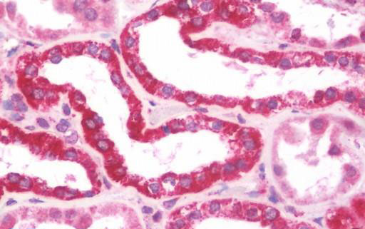 Anti-AFG3L2 antibody IHC staining of human kidney.