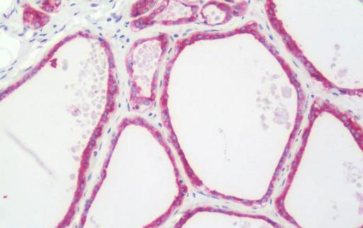 Anti-PFKM / PFK-1 antibody IHC staining of human thyroid.