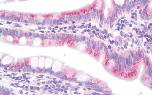 Anti-DAB1 antibody IHC staining of human small intestine.