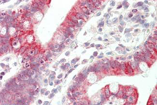 Anti-APLNR/ Apelin Receptor / APJ antibody IHC staining of human small intestine.